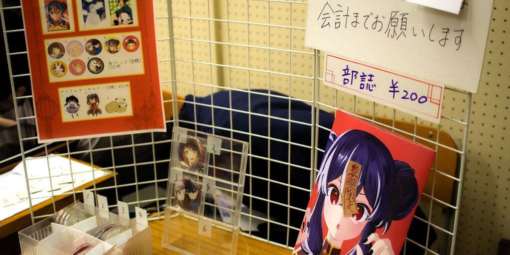 自分が所属していた頃は「漫研」でしたが現在は「漫画部」。年に 3 回部誌を発行しています。一日目ですでに売り切れとなっていました。部員が小さい子のリクエストで『アンパンマン』のキャラクター、ナガネギマンを描いてくれていました。