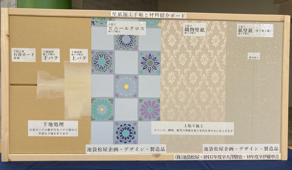 母校1階のOB・OG展示ギャラリーにてインテリア科(F.Ⅰ科)の展示が行われています。クローズアップ-2では4名・3件の作品をご紹介します。