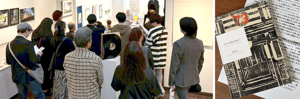 開催期間中、11月1日(土)に行われた君島昌之先生の記念講演「日本の民家を訪ねて」では、講義の内容を詳しく記した紀行文が永井裕明さん(1976年卒)によるデザインの美しい冊子としてまとめられ、来場者全員に配付されました。