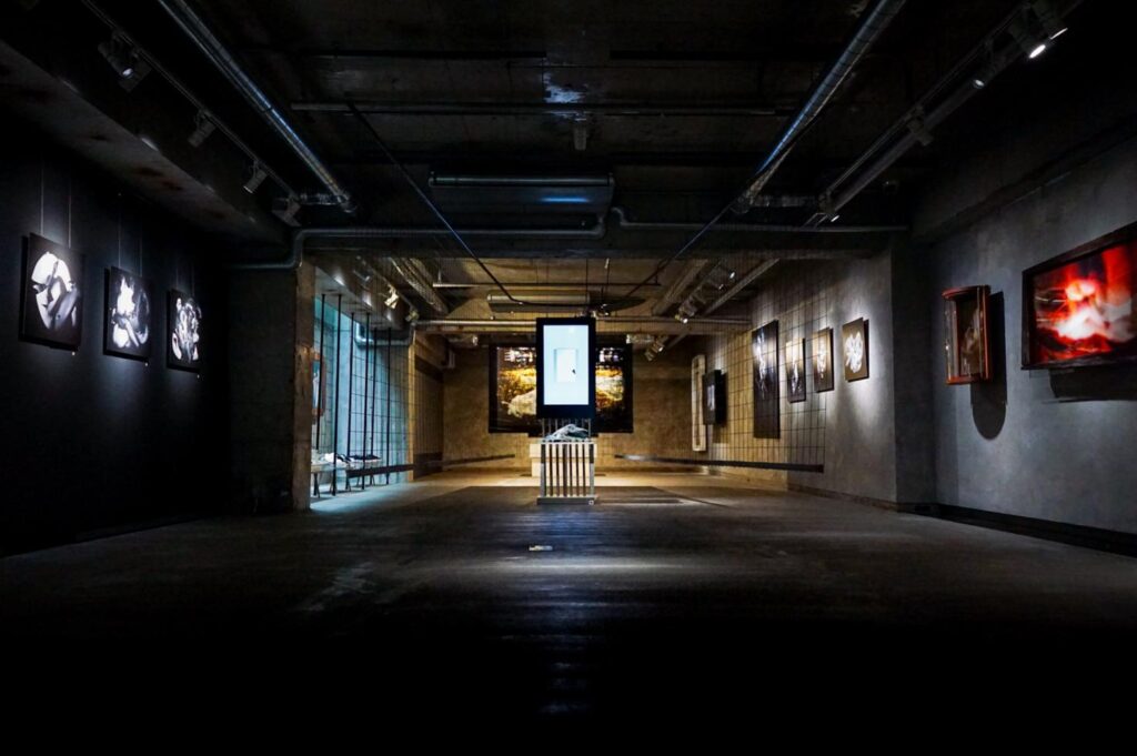 私⾃⾝2回⽬となる個展を2025年5⽉に、神楽坂にあるギャラリー√K Contemporaryさんの地下 1 階 SPACE√Kをお借りし開催しました。会場の雰囲気や広さに加え、来場者が会場へ至る道中の体験や地域性などを含めて考え、展⽰会場の選定には約1年を費やしました。会場全体の壁⾯と床はモルタルで仕上げられ、一見すると硬質な印象を受けますが、天窓から⾃然光が差し込むエリアがあり、柔らかさと開放感を併せ持つ魅⼒的な空間でした。約180㎡という広さにも、展示構成で様々な挑戦ができるなと随分ワクワクしていました。
