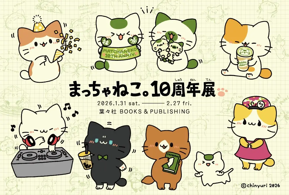 イラストレーター ちにゅりさん個展「まっちゃねこ。10周年展」開催中