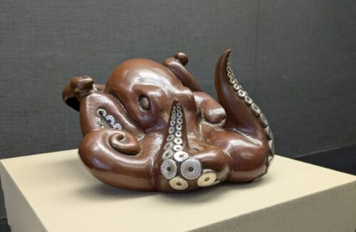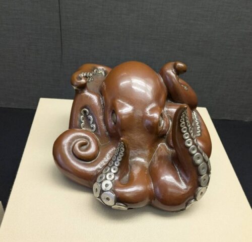 作品名「鍛銅変形銀接合蛸置物」